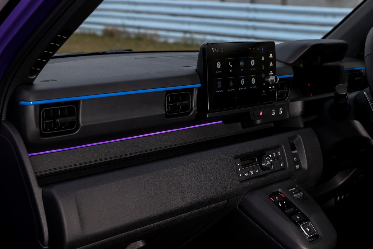 Длинная светодиодная полоса на панели переднего пассажира светится синим в обычном режиме и переключается на фиолетовый при активации "Режим ускорения". Таким образом, через зрительные и слуховые образы, а также через физические ощущения ускорения и вибрации, автомобиль стимулирует эмоции водителя, предлагая захватывающий опыт вождения электромобиля.