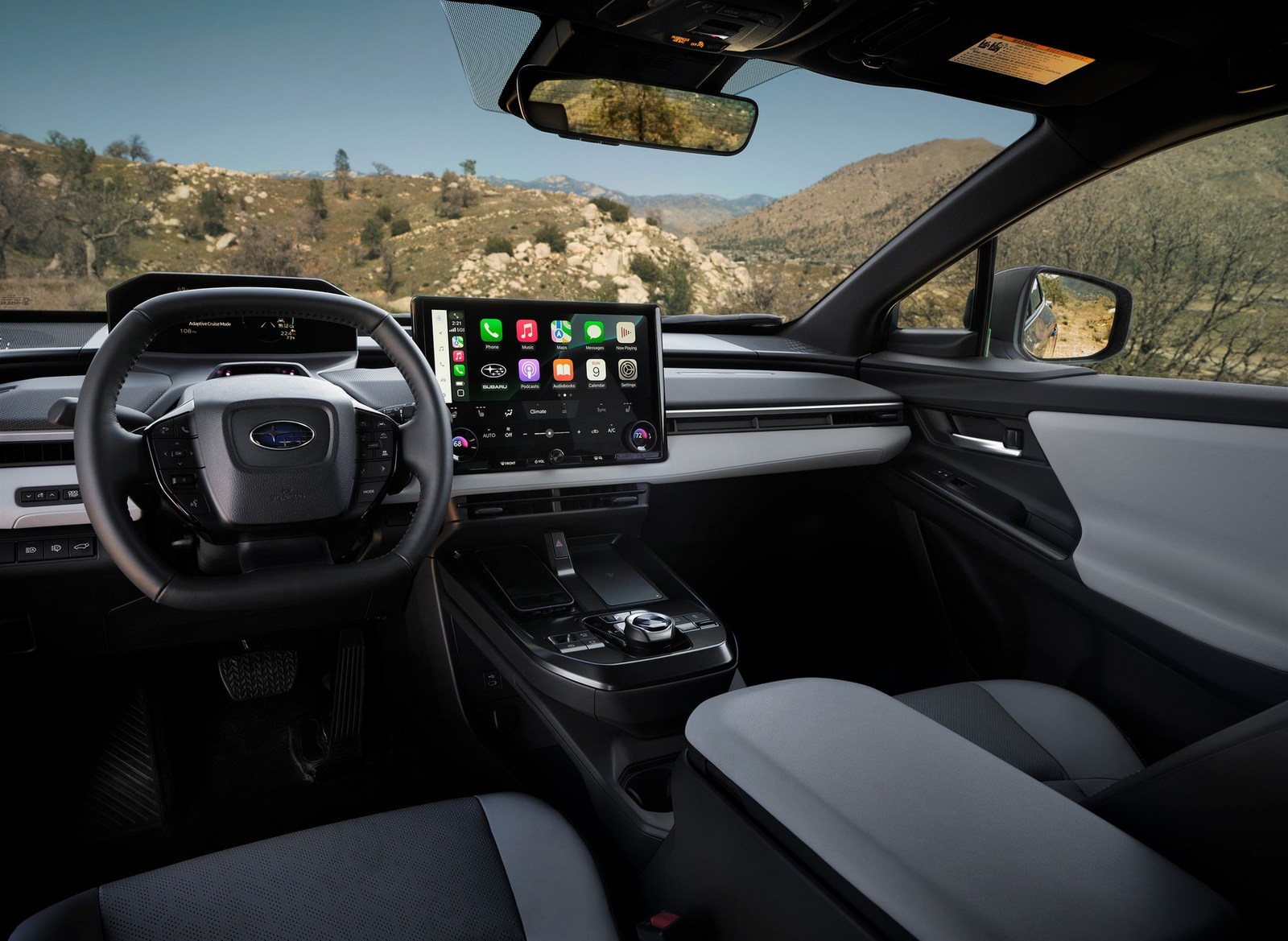 Интерьер выполнен в светлой цветовой гамме и оснащён 14-дюймовым сенсорным экраном - крупнейшим в истории Subaru. Металлическая отделка на передней панели подчёркивает спокойную, горизонтально ориентированную компоновку салона. Большая центральная консоль служит удобным центром для зарядки устройств и хранения личных вещей. Во всех комплектациях в качестве стандартной отделки сидений используется материал StarTex в сером или чёрном цвете, а в версии Touring дополнительно доступна кожаная обивка чёрного и синего оттенков.